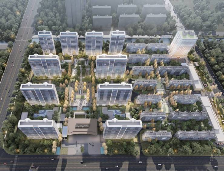 社区内部采用30%高绿化率,以"隐逸东方,藏引繁华谧境"为理念,打造无界园林重构城市边际美学。