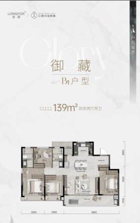 户型面积:114㎡三居、143-179㎡四居、225㎡五居
