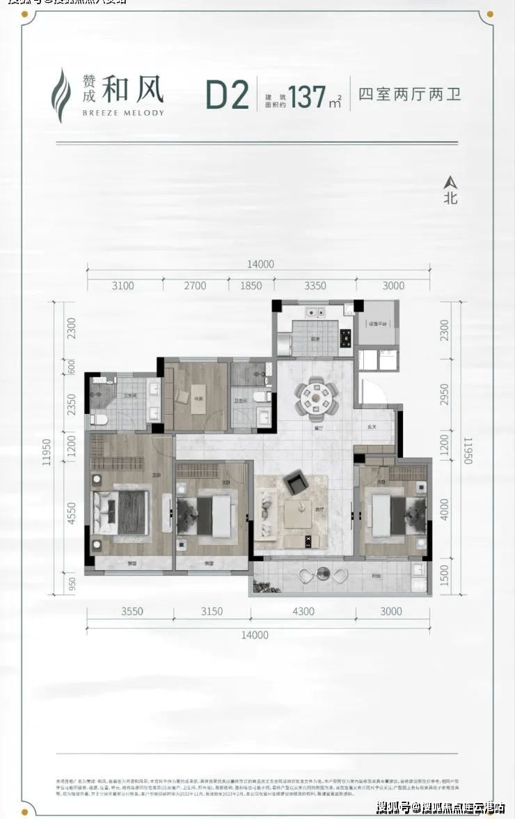 128-137㎡四居:主卧套房设计,双阳台配置,最大南向面宽达11.7米
