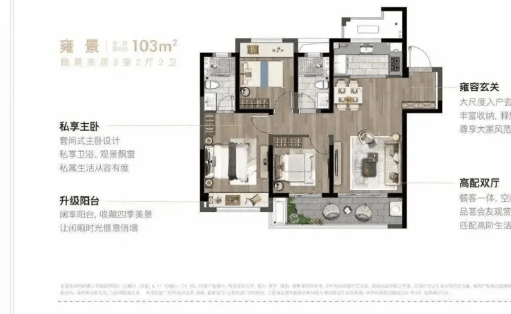 主力户型:89–103㎡三房(高层)、115–128㎡四房(洋房),得房率高达82.5%–85%,远超行业平均