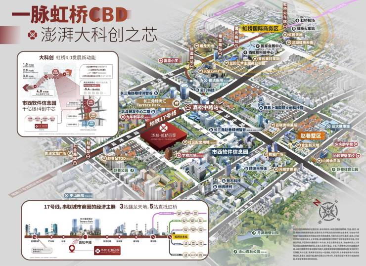 华发虹桥四季➨售楼处电话:4008083612√√【电话预约☎】位于青浦区赵巷板块,地处大虹桥商务区辐射圈核心位置,东接虹桥商务区,西临青浦新城中心。作为上海“一中四方”战略的重要组成部分,赵巷板块被定位为“大科创”产业高地,与张江齐名,已吸引华为、北斗、网易、字节跳动、商汤科技等科技巨头入驻,规划至2025年形成15万高薪岗位集群。这种产业集聚效应为项目带来持续的人口导入和资产增值潜力,成为长三角一体化进程中的价值高地。