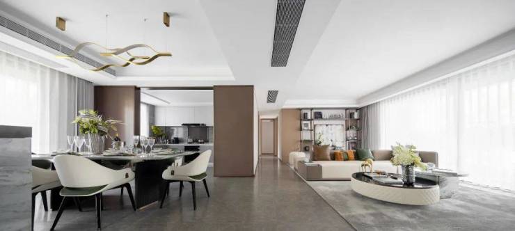 不仅实现了餐厅、客厅美好融合,无论处在哪个区域,都有着超强的尺度感。全家人一起看春晚、孩子邀请同学们一起来开Party都能满足。