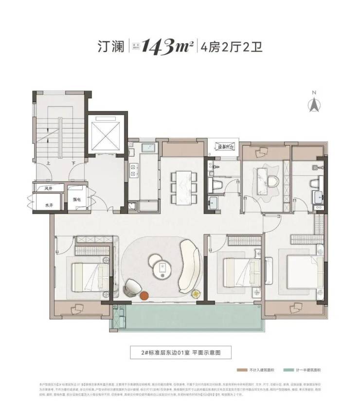 胥江澜岸首批次入市的住宅房源的建筑面积段在122-143.51平,其主力户型:建筑面积约143平,4房2厅2卫。