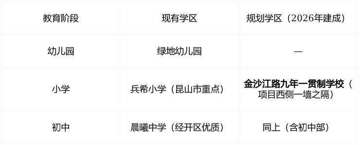 城市商圈 :5公里内覆盖 昆山奥特莱斯、金鹰国际、开市客(规划中)、永旺梦乐城 ,满足高端消费与家庭购物。