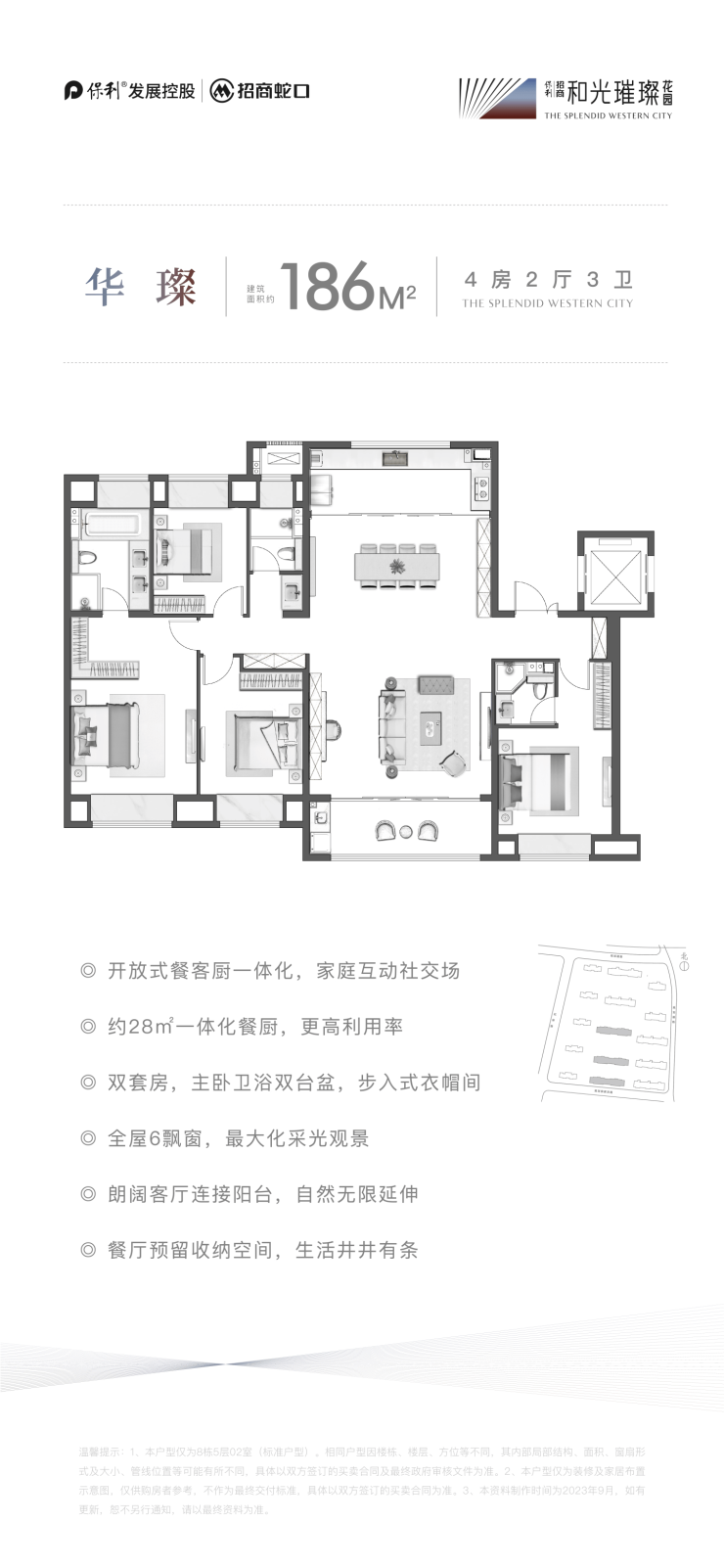 建面约186–190㎡ 四室两厅三卫