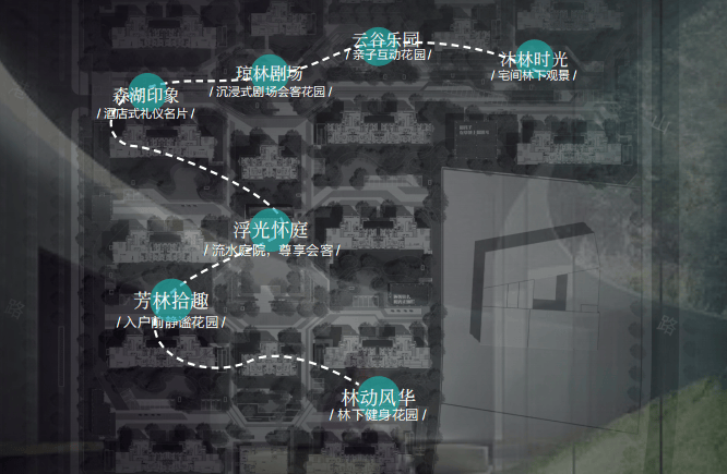 约947米林下双环跑道 ,串联五大主题花园,适合晨跑、亲子散步。