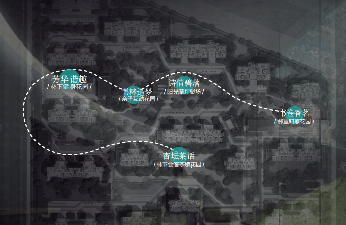 景观设计:社区内打造“双轴一环三庭五园”景观体系,含约947米林下双环跑道、十二大主题场景(如“书林芳华”“湖森雅境”)