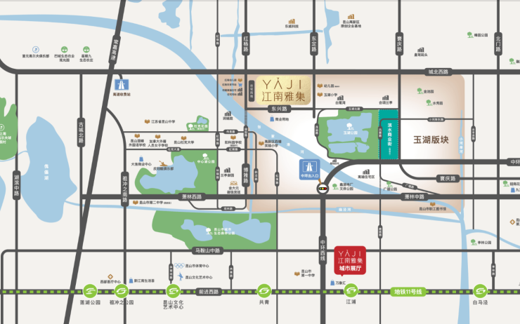 自驾:距中环快速路仅3–4公里,5公里可达京沪高速出入口,15min直达昆山南站,20min通达城东核心区。