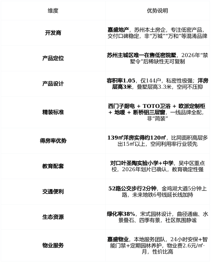 ✅ 核心结论:苏州主城区稀缺低密院墅,2026年现房在售,139㎡精装洋房仅剩尾盘,180㎡下叠带210㎡庭院,总价350–600万,无新风但精装标准高,对口叶圣陶系名校