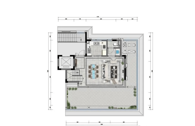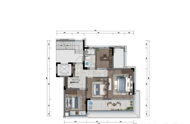 160㎡下叠:四室三厅,庭院直连茶山景观,一层层高3.6米,空间通透无压抑感,私密性极强。