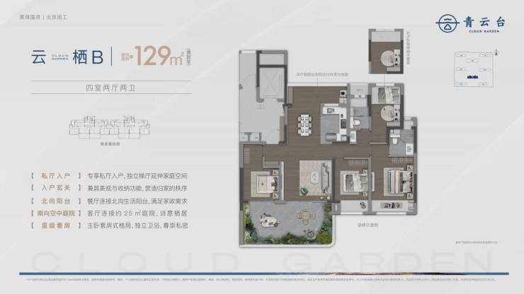 户型面积:约107-192㎡,涵盖三居至四居,119㎡以上户型实现约100%使用率,赠送空中庭院面积11-65㎡