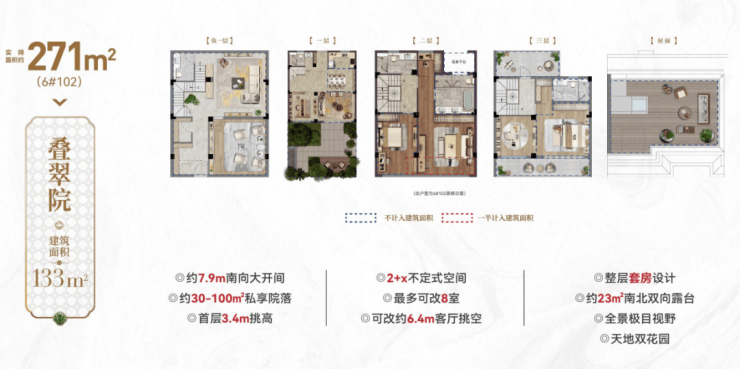 【空间非凡】 (联排产品) 得房率最高约248%丨全系配置私家庭院、露台、地下室