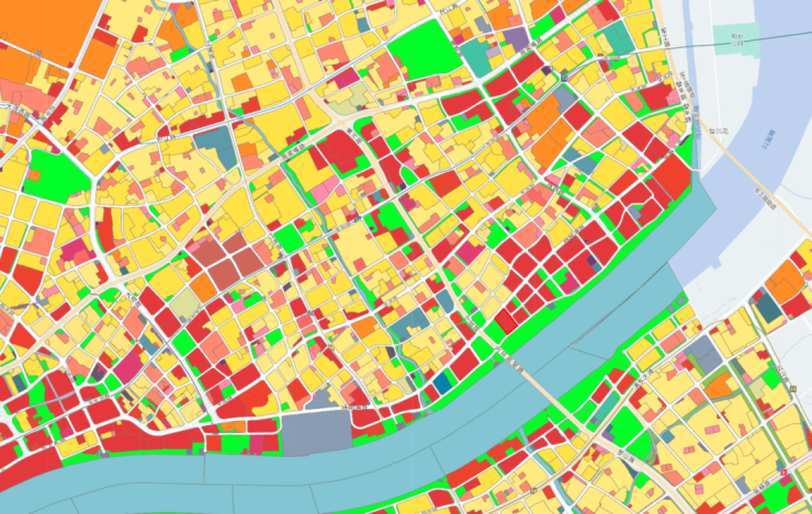 【保利誉滨江】也是杨浦滨江蕞后一个拥有无遮挡江景产品的地块。根据统计,杨浦滨江南段还有9幅住宅土地尚未出让,但均无法提供全景江景产品👇(蓝色的点为待出让住宅土地),因此项目的江景资源更为可贵。