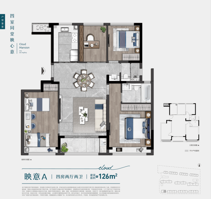 126㎡四房:适合二孩家庭,空间布局合理,满足全周期居住需求。