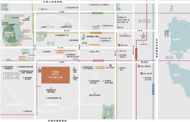 路网:西环快速路、中环西线、苏福快速路环绕,高效连通姑苏区及苏州北站。