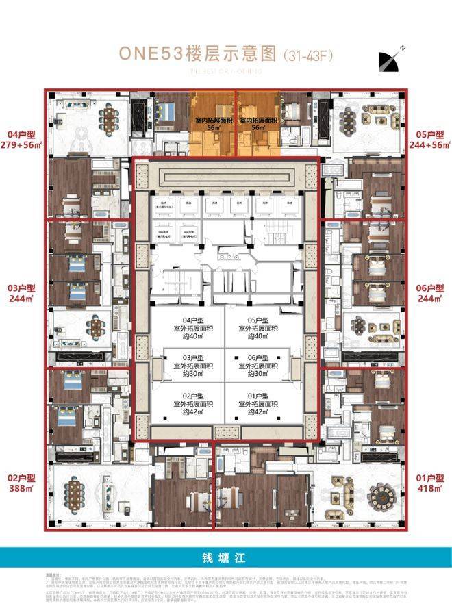 定位:钱江新城CBD核心区封面级商住大平层,定位“双水交汇的恒产孤品”,集国际设计、顶奢装标与云端资产于一体,主推建面228-438㎡新古典大平层,含赠送得房率超80%