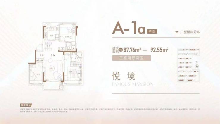 87㎡三房双卫设计,独立玄关,U型厨房,客厅面宽3.6米,主卧带飘窗