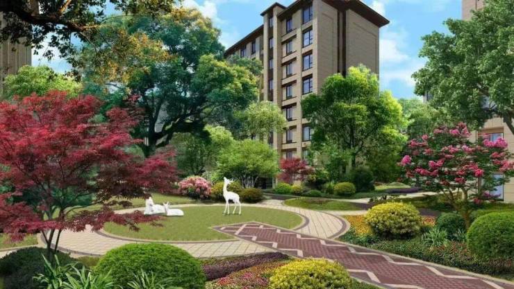 “森系低密园林”中央水景+樱花林荫道+阳光草坪+老年健身环+儿童沙坑区无高差设计,全龄友好