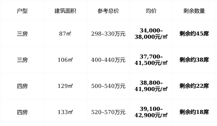 约40,000元/㎡精装交付层高3米(行业常规2.8米)得房率高达81%–83%133㎡户型实得超108㎡,比同面积高层多出15㎡实用空间
