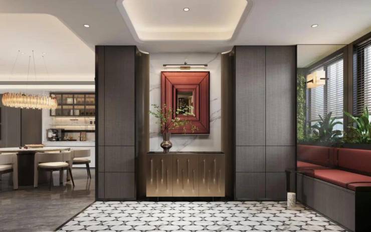以建筑面积约185㎡户型为例,全明入户玄关,自带约3㎡全明储藏室与飘窗,完美解决大件、不规则物品的收纳问题;