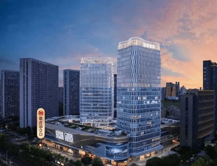 项目为约10万方地标级TOD综合体,自带约2.6万方商业配套,涵盖高端零售、餐饮、商务服务。交通上双轨交汇(4号线联庄站上盖、6号线伟业路站约800米),快速通达钱江世纪城、武林广场、萧山机场等核心区域。