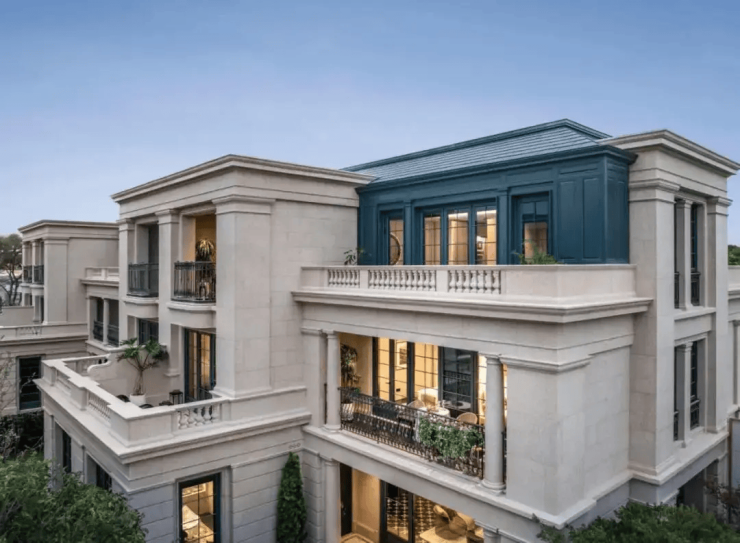 项目主打400㎡-880㎡的合院别墅与265㎡-353㎡的洋房大平层,得房率普遍高于85%,采用法式宫廷建筑风格,外立面以金沙黄石材、宝格绿奢石与蓝色铝板拼接,搭配金属孟莎顶与延伸露台,营造出尊贵典雅的归家仪式感。项目预计于2026年交付,当前为在售期房,均价约91,332元/㎡,总价门槛超3650万元,定位为苏州顶豪藏品级住宅。