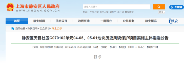 而后在2023年7月21日,华发招商联合体官宣拿下静安天目社区04-05、05-01历史风貌保护项目:
