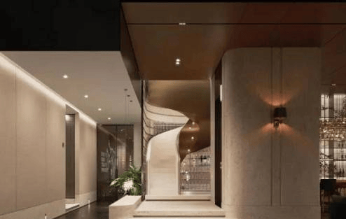 社区入口打造隐奢门庭,水景、精致幕墙等私享尊荣。社区大门臻选古琦黑奢石,手工打磨,做成连续的弧形幕墙,在细节上把珠宝的工艺应用住宅建造中。