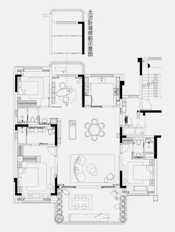 户型点评:为3房2厅2卫布局,三开间朝南,约6米南向横厅,连接约17平花园露台。