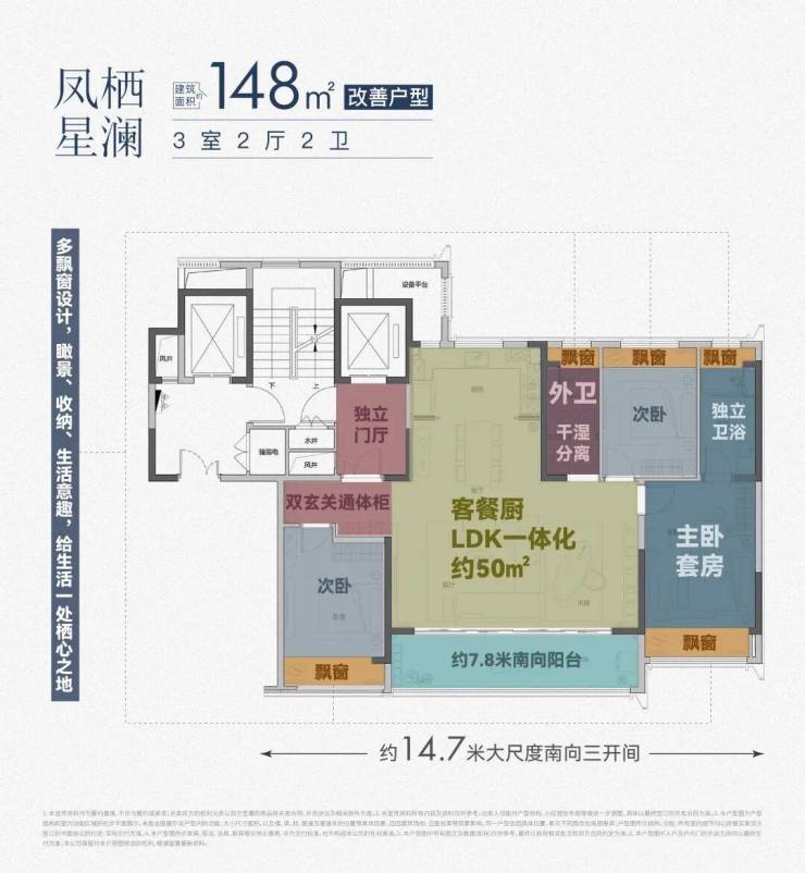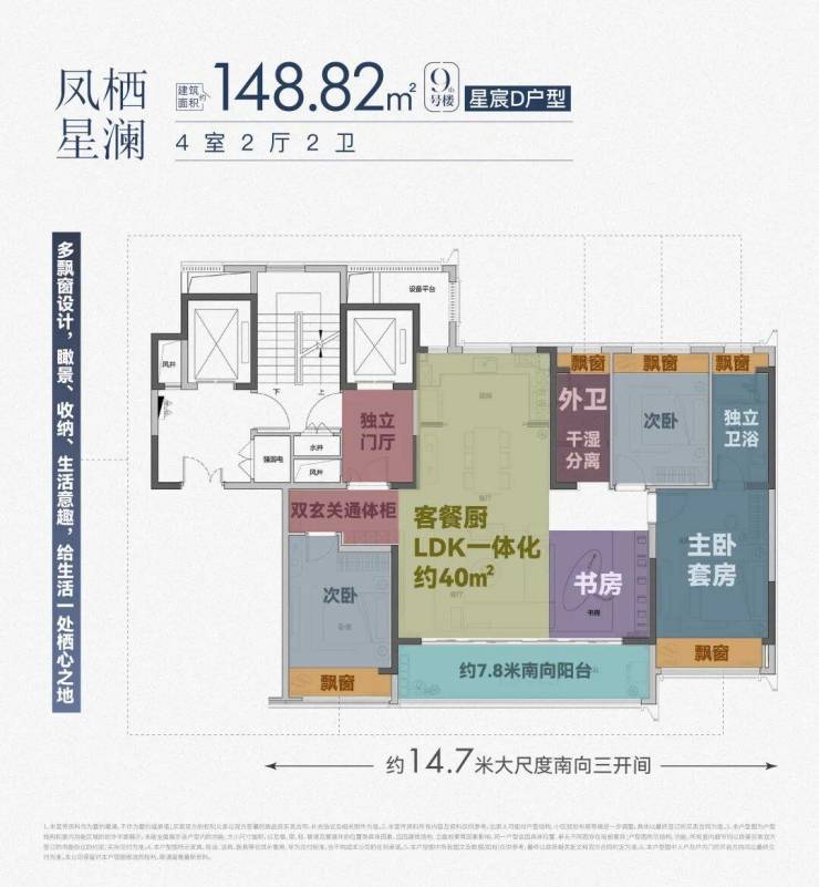 【四开间朝南】约14.7米四开间朝南,全明采光设计高颜值+高光户型,南向俯瞰微度假景观,适逸生活流淌