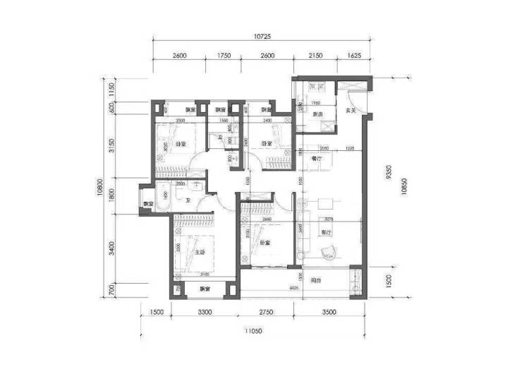118㎡户型四房两厅两卫