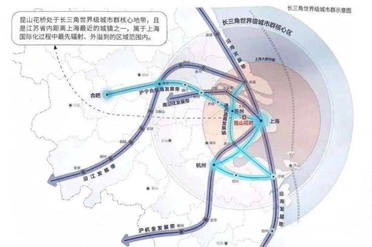 城市发展,交通先行。上海地铁11号线加速了花桥上海两地连接;沪宁高速、312国道、上海绕城高速、地铁S1号线(建设中)交汇……同城化深入发展,承接着更多上海的外溢需求。