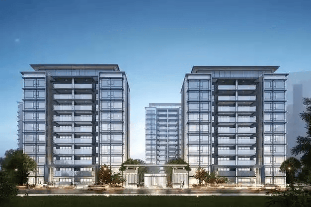 建筑形态:18幢16–17层小高层,采用台地式设计,整体抬高约3.2米,增强私密性与景观视野