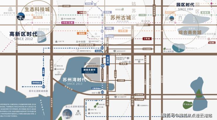 紧邻地铁4号线花港站,一线联通苏州各大主城,9站观前街,10站之内5个大型商场,更有医院等配套,周边市政道路鲈乡北路、半岛路、环湖路即将通车,独家占有绝好的交通资源