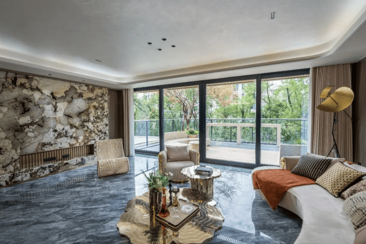 景观:项目内部耗资2000万打造飞瀑、艺术雕塑与百年植物景观,融合自然与艺术。