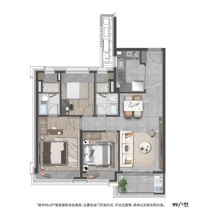 项目摒弃传统高密度塔楼模式,采用小高层+洋房组合,营造低密舒适居住氛围,外立面以玻璃幕墙+铝板+石材基座构成现代简约风格,搭配晶体塔冠设计,整体视觉通透、光感强烈,契合当代城市精英对美学与品质的双重追求。