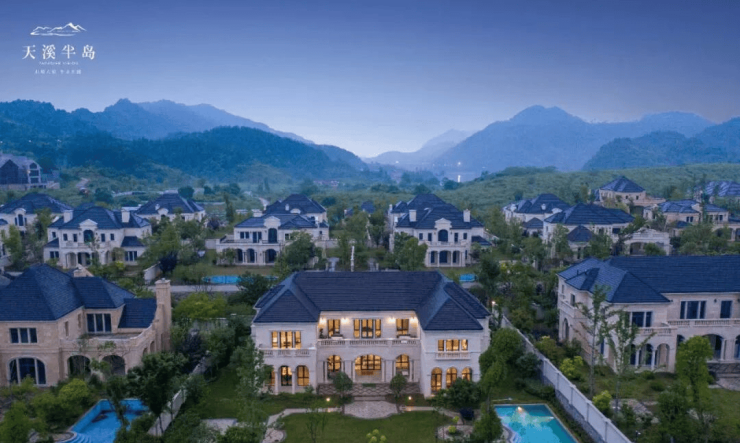 项目择址桐庐天溪湖国际旅游度假区核心,三面环湖、一面临江,建筑依山就势,采用全石材干挂立面与凡尔赛宫式园林轴线,打造“城市之外的东方山水居所”。