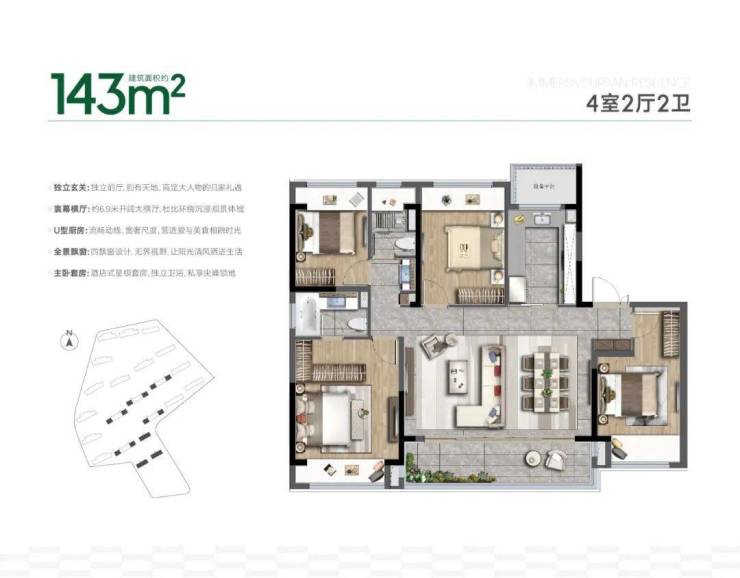 主打房型:建筑面积约105㎡、130㎡、143㎡