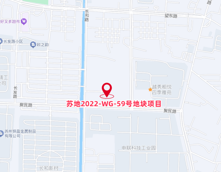 联胜&江南国际59号地块位于黄埭长和路东侧、聚民路北侧,就在越秀相悦四季旁边。