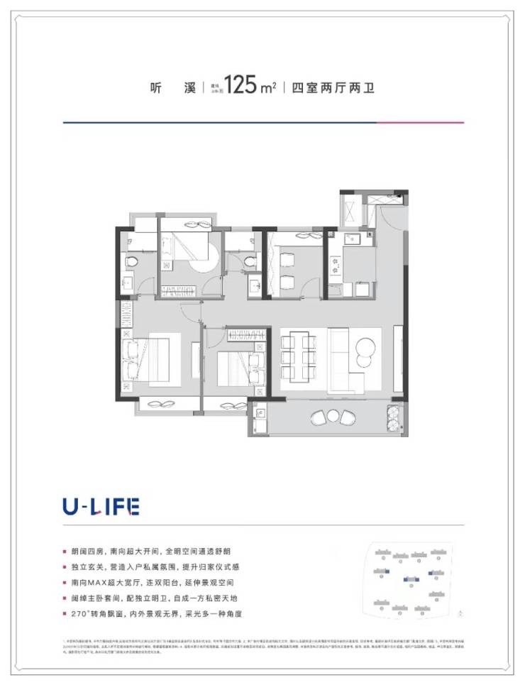 125㎡四室两厅两卫(横厅设计,总价约188万)