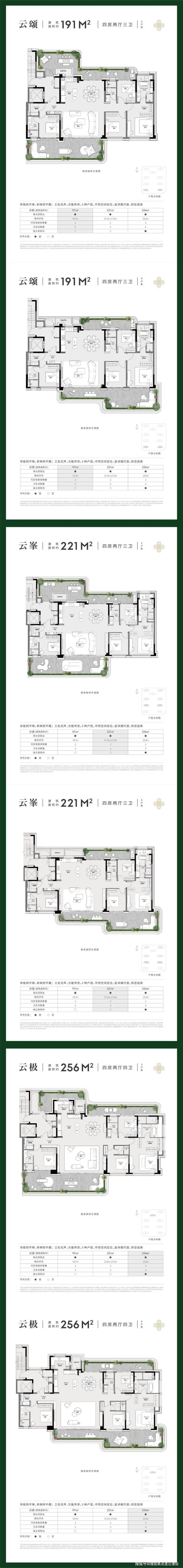 户型有:191㎡、221㎡、256㎡