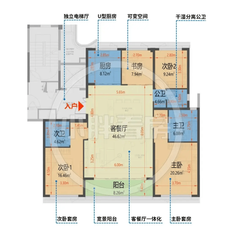 类一梯一户:独立电梯厅,私密性极强;