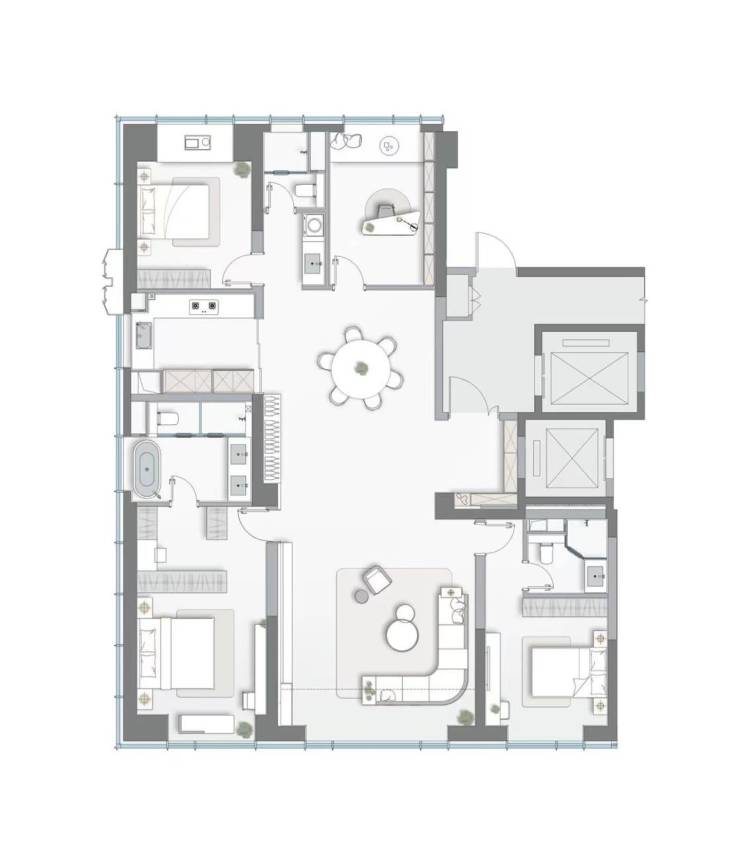 -【建面190㎡4居】,价格680.0-760.0万,分布于2幢,2梯2户,层高3.15米,总楼层45F。