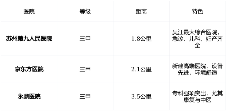 医疗:三甲就在2公里内,安心有保障