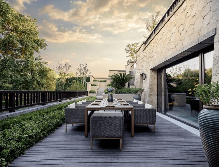 建筑风格独特:采用“廊亭檐院”传统风格,配备四重庭院、270°环景客厅及十大类六十余项精装细节,营造出浓郁的中式居住氛围。