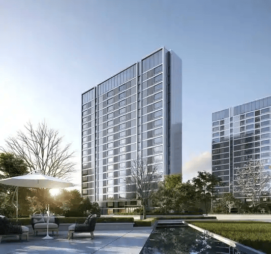 建筑风格:现代简约外立面,铝板+石材组合,高级灰色调,东侧高架楼栋定制公建化立面,楼间距达97米,保障视野与隐私。