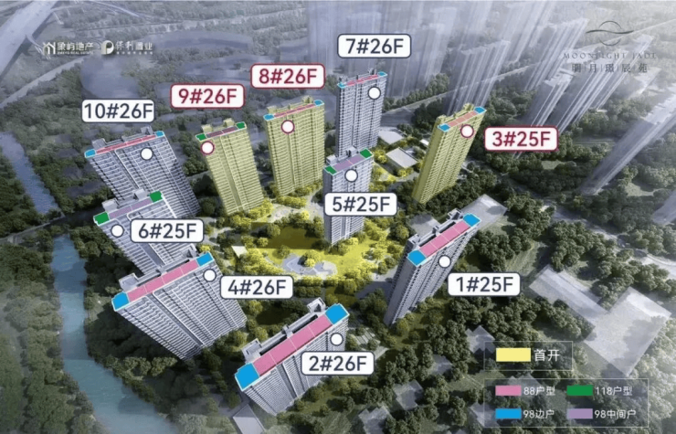建筑类型:板楼高层,共10栋,层高25-26层