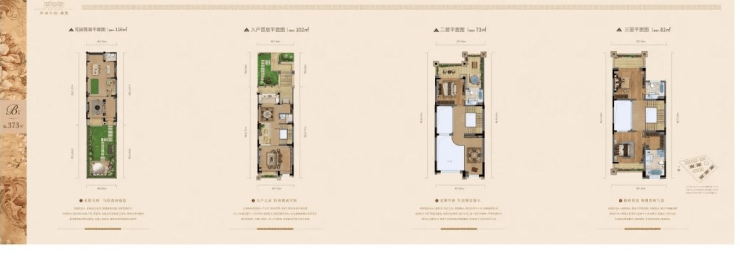 主力户型为建面约358–373㎡的纯别墅产品,具备以下特征: