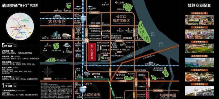 项目交通优势显著,构建了“公路+铁路+轨交”的立体交通网络。自驾可通过G15沈海、S48沪宜、S7沪崇高速以及346国道、太浏快速路,快速通达上海嘉定、宝山等地;公共交通方面,浏河客运站有专线对接上海7号线美兰湖地铁站;铁路出行上,距离沪苏通铁路太仓站约6.1公里,可便捷抵达上海虹桥站、上海站,在建的沪通铁路二期将连通上海东站,未来南沿江高铁、北沿江高铁(已获批)、苏锡常城际铁路也将汇聚太仓站,规划中的上海嘉闵线北延伸至太仓站并可与沪苏通铁路换乘,实现与上海的深度融合