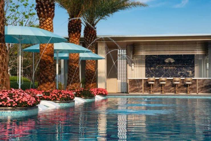 社区内 1000㎡中央草坪 + 280㎡无界泳池 ,打造“度假式社区”体验